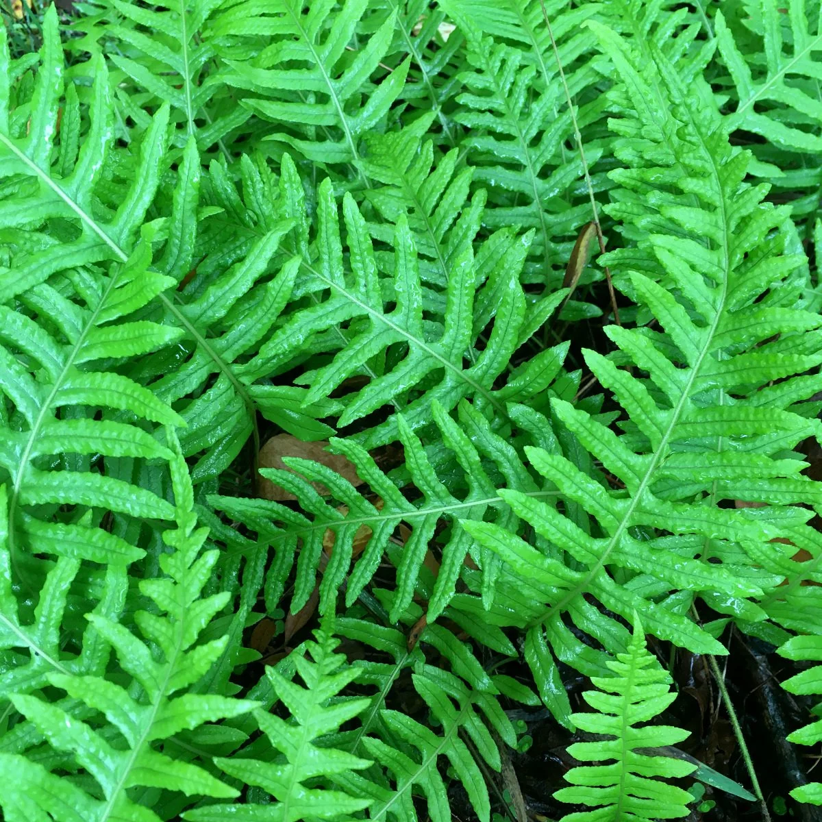 They grow from a rhizome that is usually tucked into a bed of moss where it is protected and kept moist. The rhizome has a licorice flavor which is unrelated to the other plants that have a licorice taste such as star anise, fennel, or licorice. Daniel Mathew writes, “In the Northwest, licorice fern rhizomes were sucked by hungry hunters or berry pickers along the trail, or fed before meals to finicky young eaters. In quantity they may prove laxative, but most people find them too bitter to eat in quantity.”
