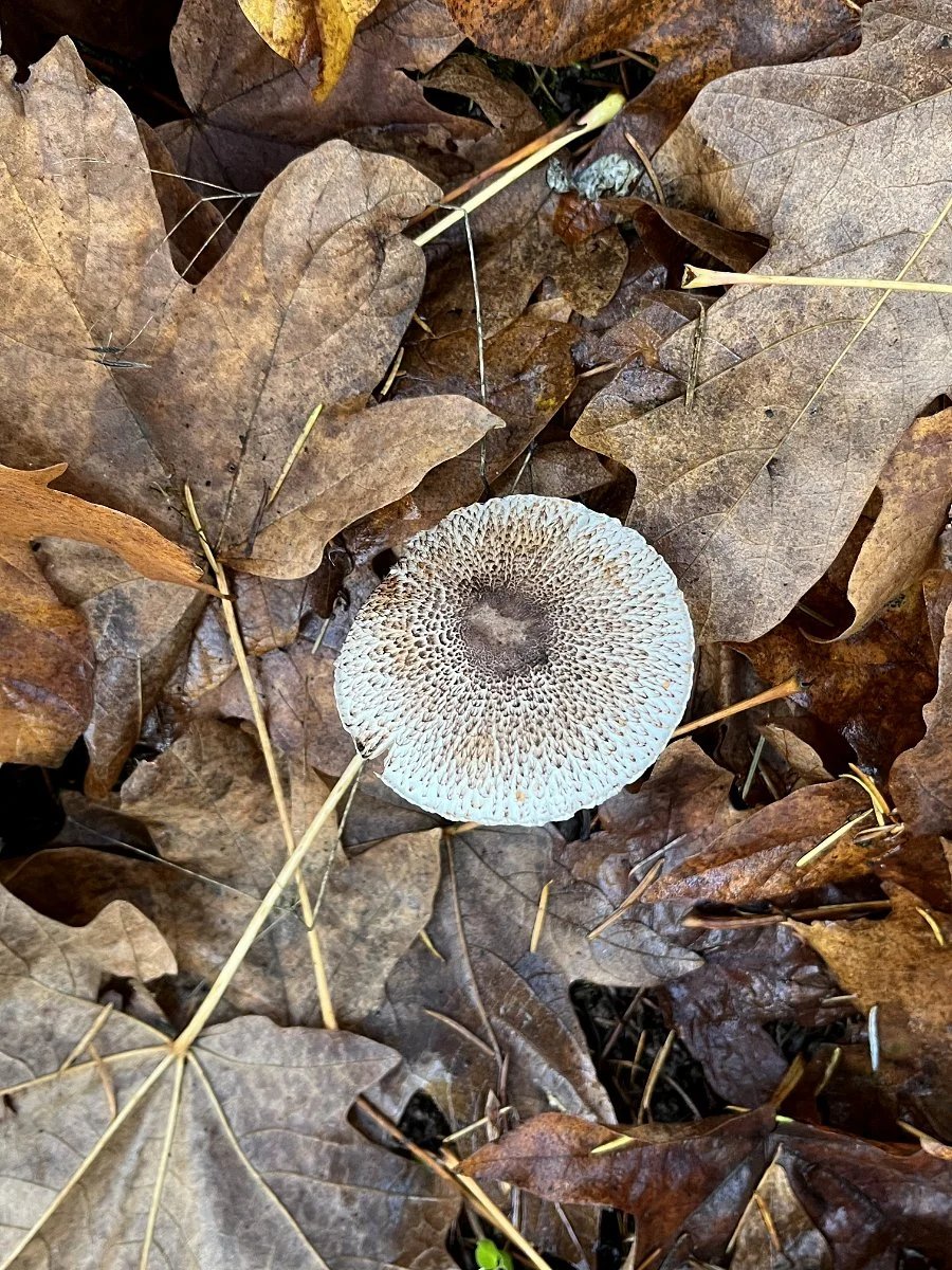 The essence of the earth is flowing out of the center of this mushroom cap with its rich, fertile brown. A fruiting body conjured up by the spirit of the rain—a reminder of a wondrous, subterranean world. Small creatures gathered under its umbrella. Had they come to mingle and dine, to give thanks to the mystery of life and to honor Mother Nature’s wellspring of beauty?
