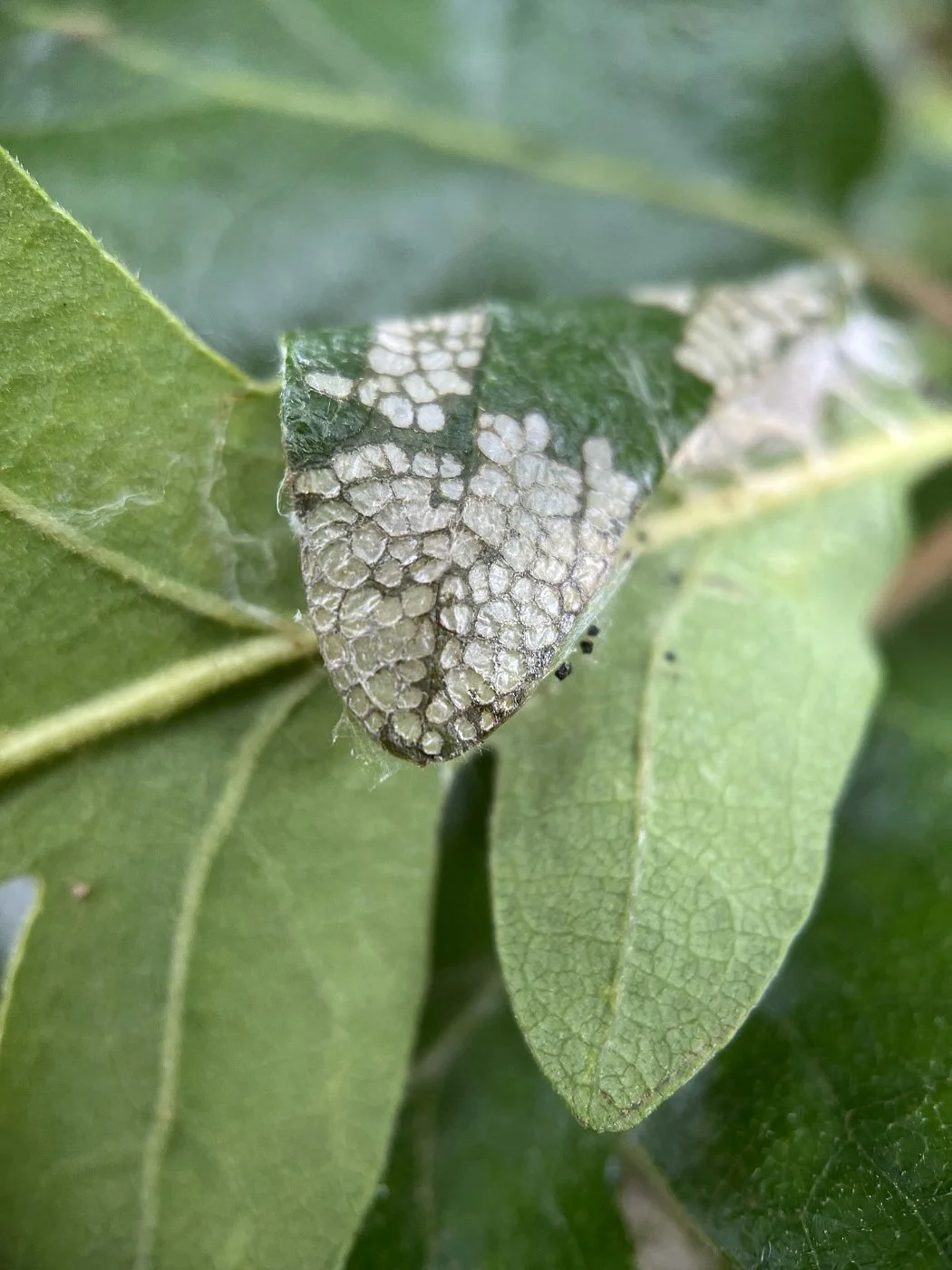 iNaturalist identifies them as a moth in the genus Caloptilia. The larvae begin as leaf-mining sap-feeders. The latter instars usually exit the leaf and feed within a folded roll at the tip of a leaf lobe. You can see the tissue being eaten away leaving a brown spot on the leaf with the leaf veins exposed. When I unrolled some of the leaf tips, I found caterpillars inside some of them. They were either still crawling around or starting to spin a cocoon. With the leaf tips that were empty, I guessed they were the ones where the caterpillars decided to descend from the trees and spin their cocoons in the leaf litter on the ground. That certainly seems like a good strategy for avoiding chickadees.