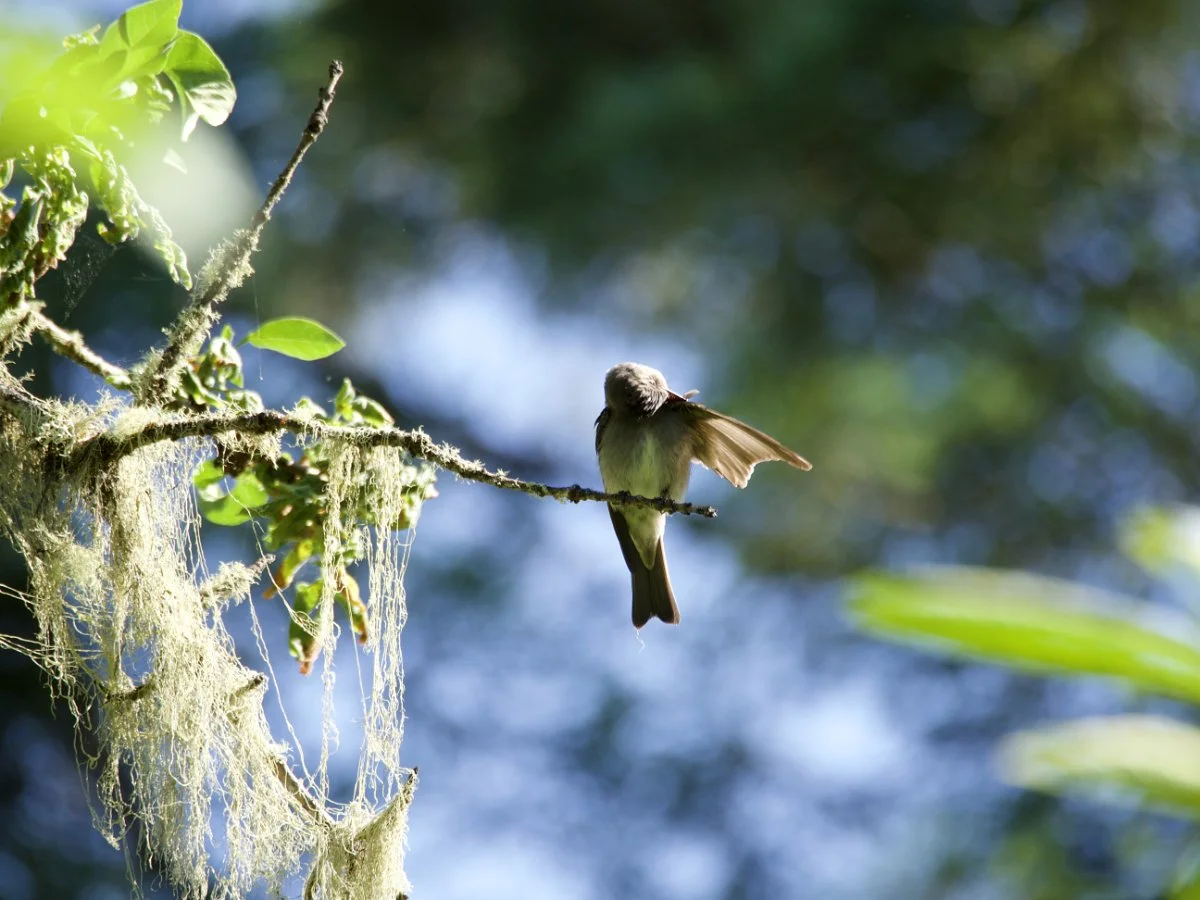 In the early warmth of the morning sun, I watched this Western Wood Pewee sunning and preening. It spent most of the time with its back to the sun with its tail feathers spread out and its wings slightly open and away from its body. After a five minutes or so of sunning, it would have a session of preening that lasted approximately five minutes. Sometimes when it preened, it would flip around and have its other side exposed to the sun.
