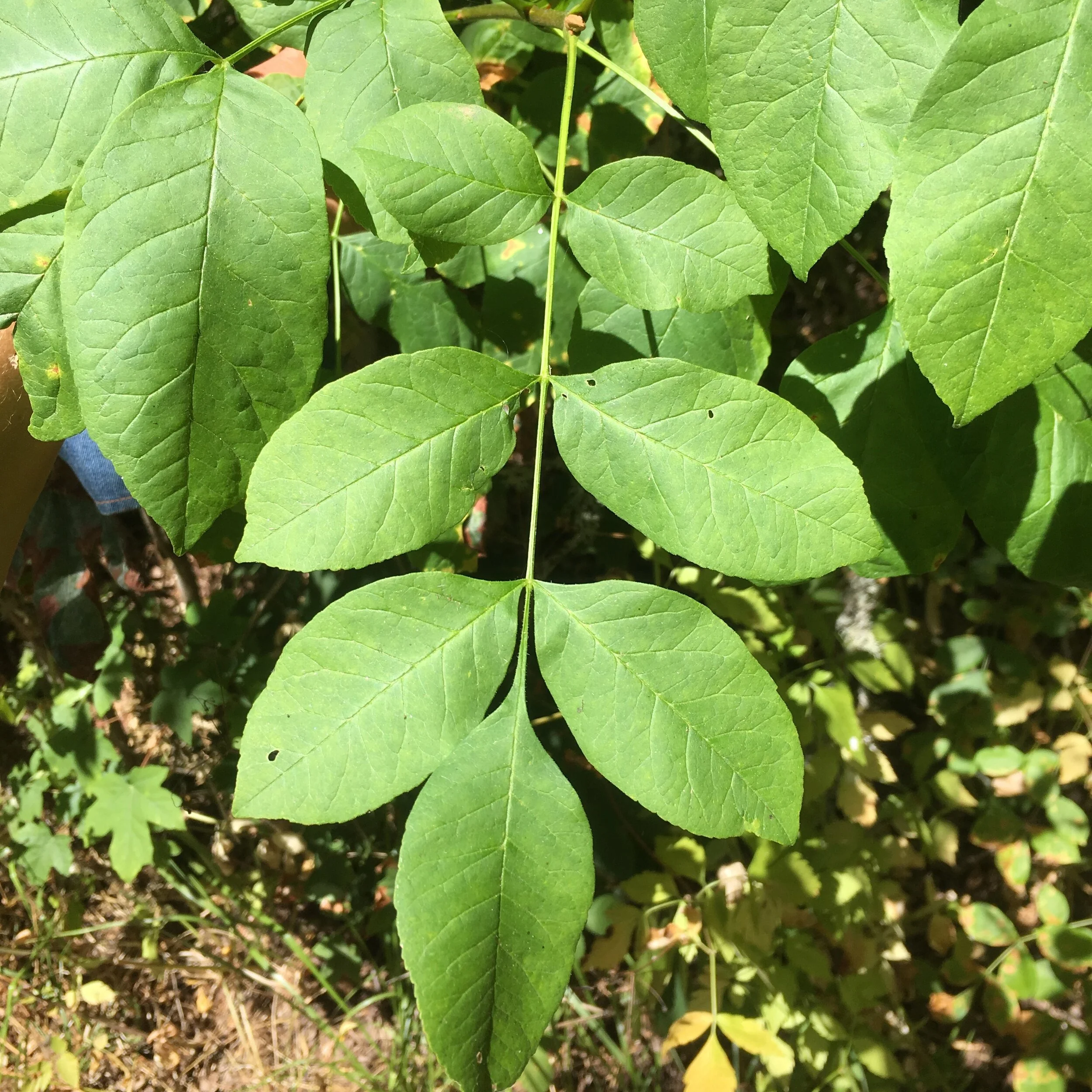 Leaflets: 5 to 9 elliptical leaflets per leaf, paired except at end. 2 - 5” long, 1 - 1.5” wide. Bottom of leaf has fuzzy leaf veins. Leaves turn yellow or brown in the fall.